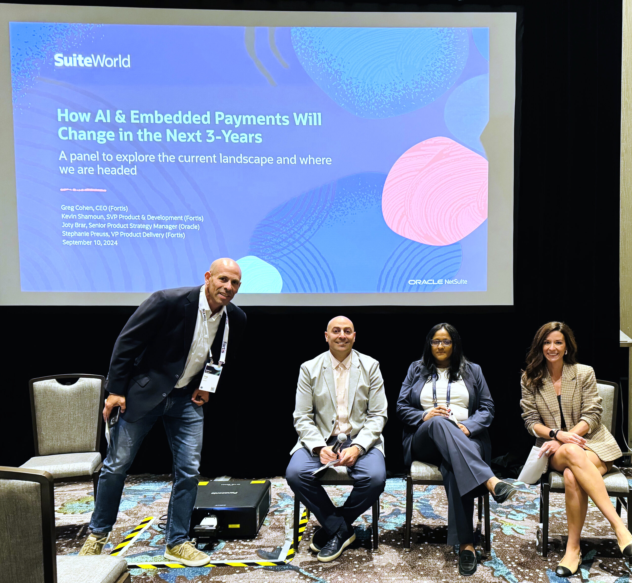 Amongst all the excitement, the team also participated in a panel session, How AI & Embedded Payments Will Change in the Next 3-Years featuring Fortis’ Greg Cohen (CEO), Kevin Shamoun (SVP, Product & Innovation), and Stephanie Preuss (VP of Product Delivery), alongside Joty Brar (Senior Product Strategy Manager) from Oracle.